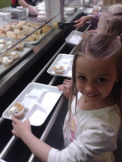 When it's time, I go down to meet C Girl and I go through the line with her too! Yep, I had lunch twice today! We sat with a bunch of her friends from her class.